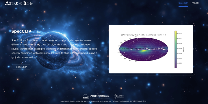 除了AstroOne,之江实验室和国家天文台还合作打造了SpecCLIP恒星光谱基座模型、FALCO时域光变模型等天文科学计算模型。